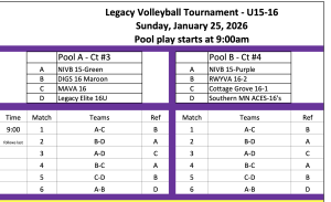 January 25th-Legacy Woodbury-Tournament Information below